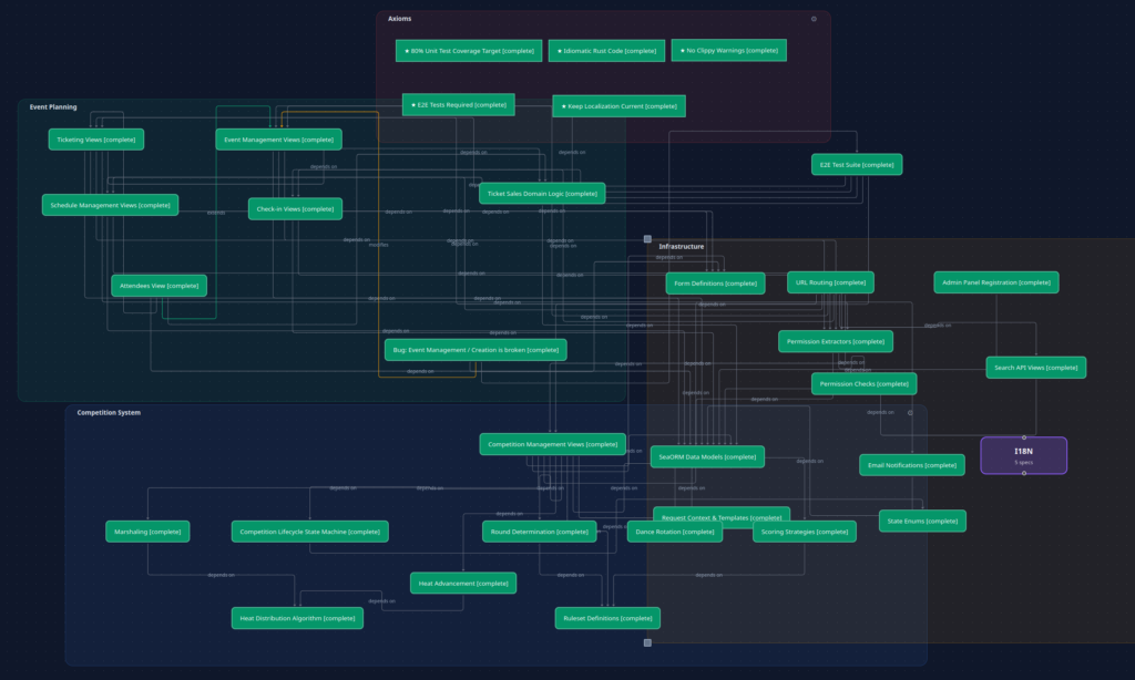 I used the weekend to prototype an application called “Synapse”. This is essentially a software development environment that has a knowledge graph at its core and is driven by different AI agents. The user writes specs, agents write plans for the specs, the user approves plans and implementations – our well known flow. However, Synapse brings the knowledge graph, that allows the agent to see the intention behind already implemented features months after the fact, even if the user that picks up a feature again is not the one who originally specified it.